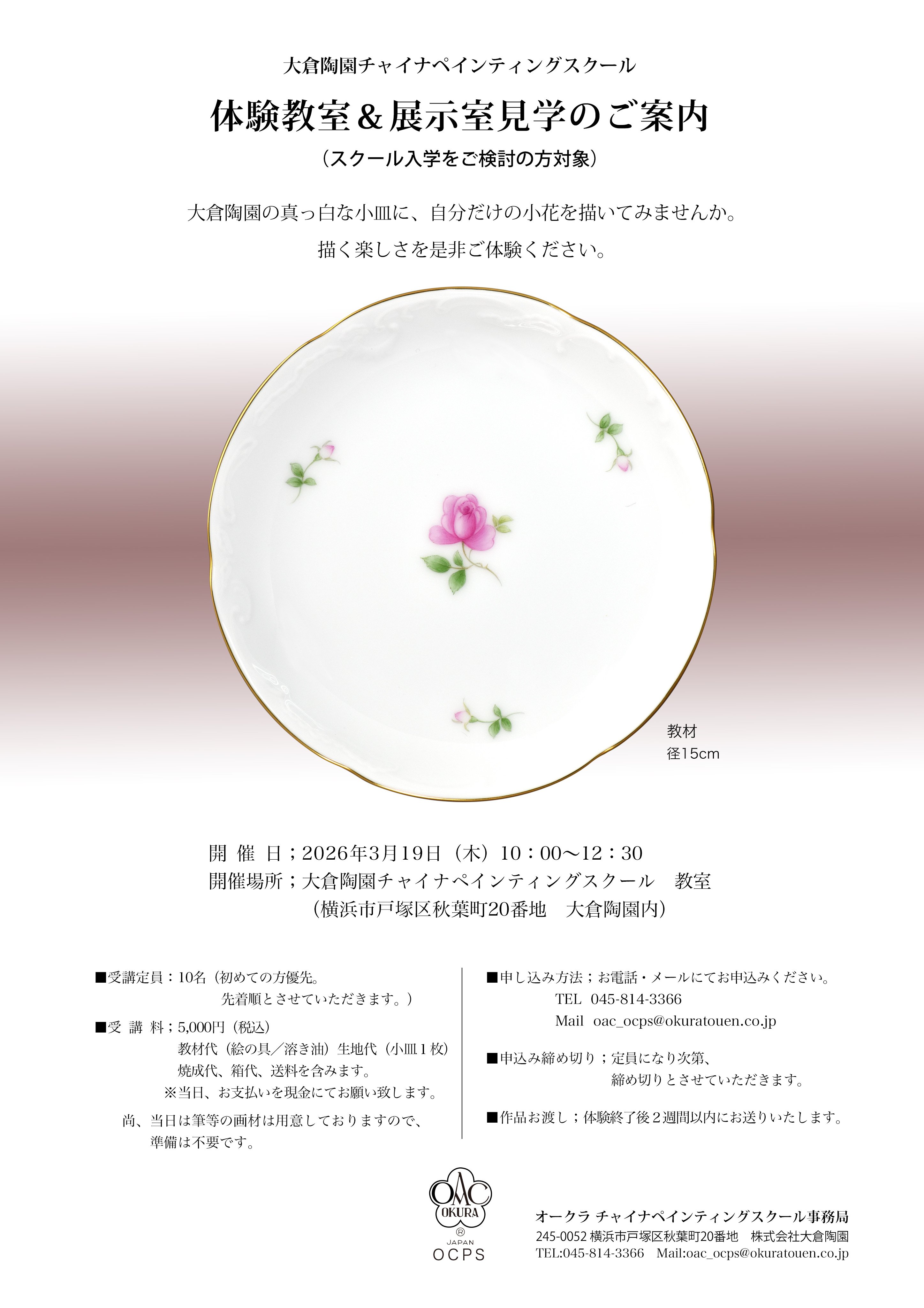 大倉陶園チャイナペインティングスクール 体験教室&展示室見学のご案内